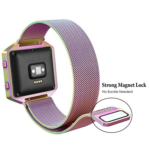 Fitbit Blaze Bands with Frame Metal Small Large ( 5" - 9.4"), Swees Stainless Steel Magnetic Milanese Replacement Band for Fitbit Blaze Women Men, Black, Silver, Colorful, Champagne Gold, Rose Gold