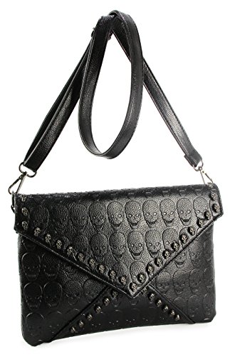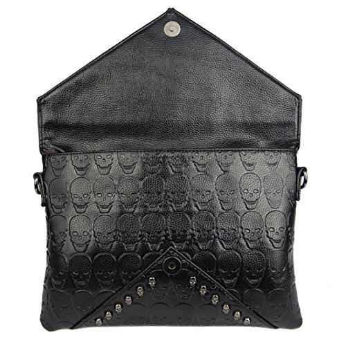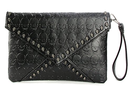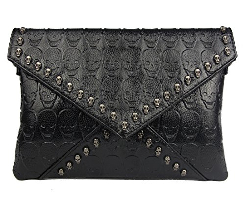 Product Description Black Gothic Skull Rivets Envelope Handbag Clutch Purse for Women Retro skull and punk rivets studded,stylish envelope shaped with adjustable and removeable strap.