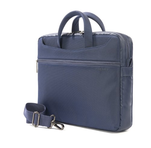 New Work_Out slim bag made in two-tone resistant and water-repellent nylon. The bag has a contrasting border in wax effect fabric that gives to it a technical and extremely modern look. The bag has one back rear pocket and two front wide pockets, one with velcro fastening and with organizer inside and the other with zip fastening to store cables and more. The double rigid handels are coated with fabric for an excellent ergonomic grip. One of the most sophisticated detail are the reversed front zippers that hide the zip teeth for a more plain and design look. Inside, the bag is equipped with a padded notebook compartment with Anti-shock system, compatible with Mac Book Air 11"/ MacBook Pro/Air 13"/ Ultrabook 13", plus an iPad/tablet pocket.