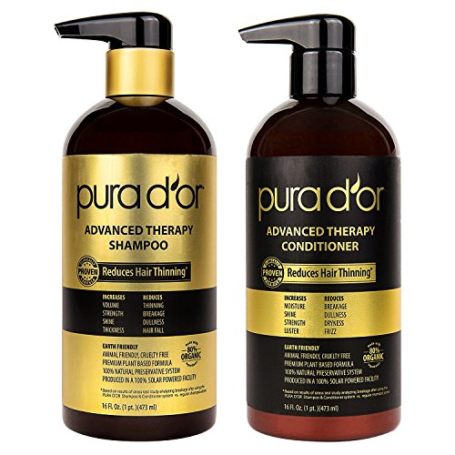 PURA D'OR Advanced Therapy System Shampoo & Conditioner Reduces Hair Thinning for Thicker Head of Hair, Infused with Premium Organic Argan Oil & Aloe...