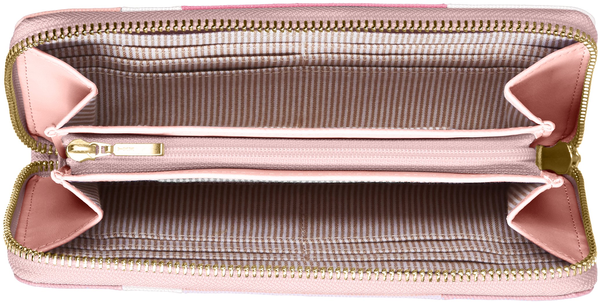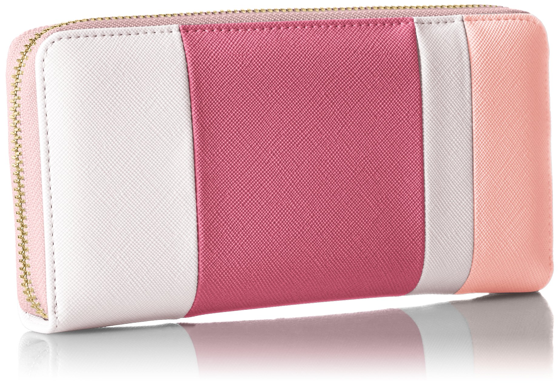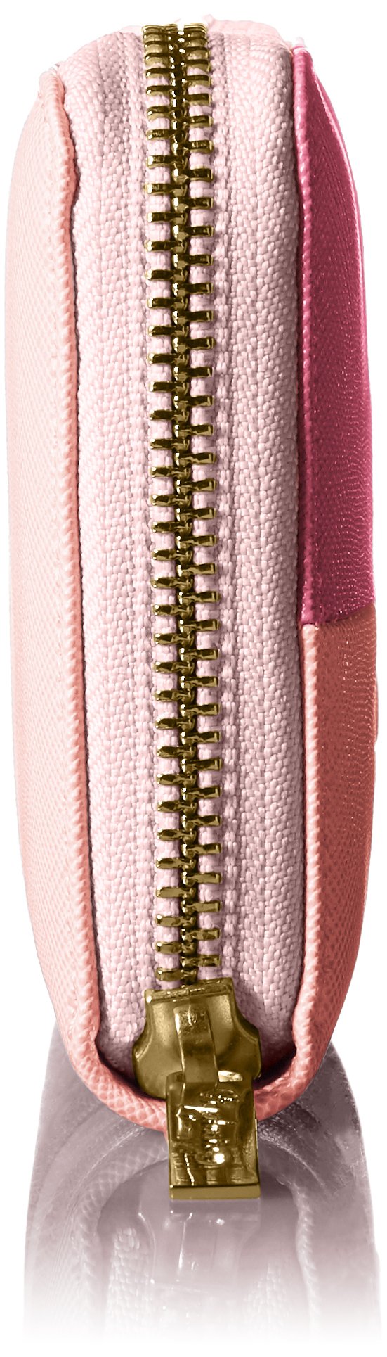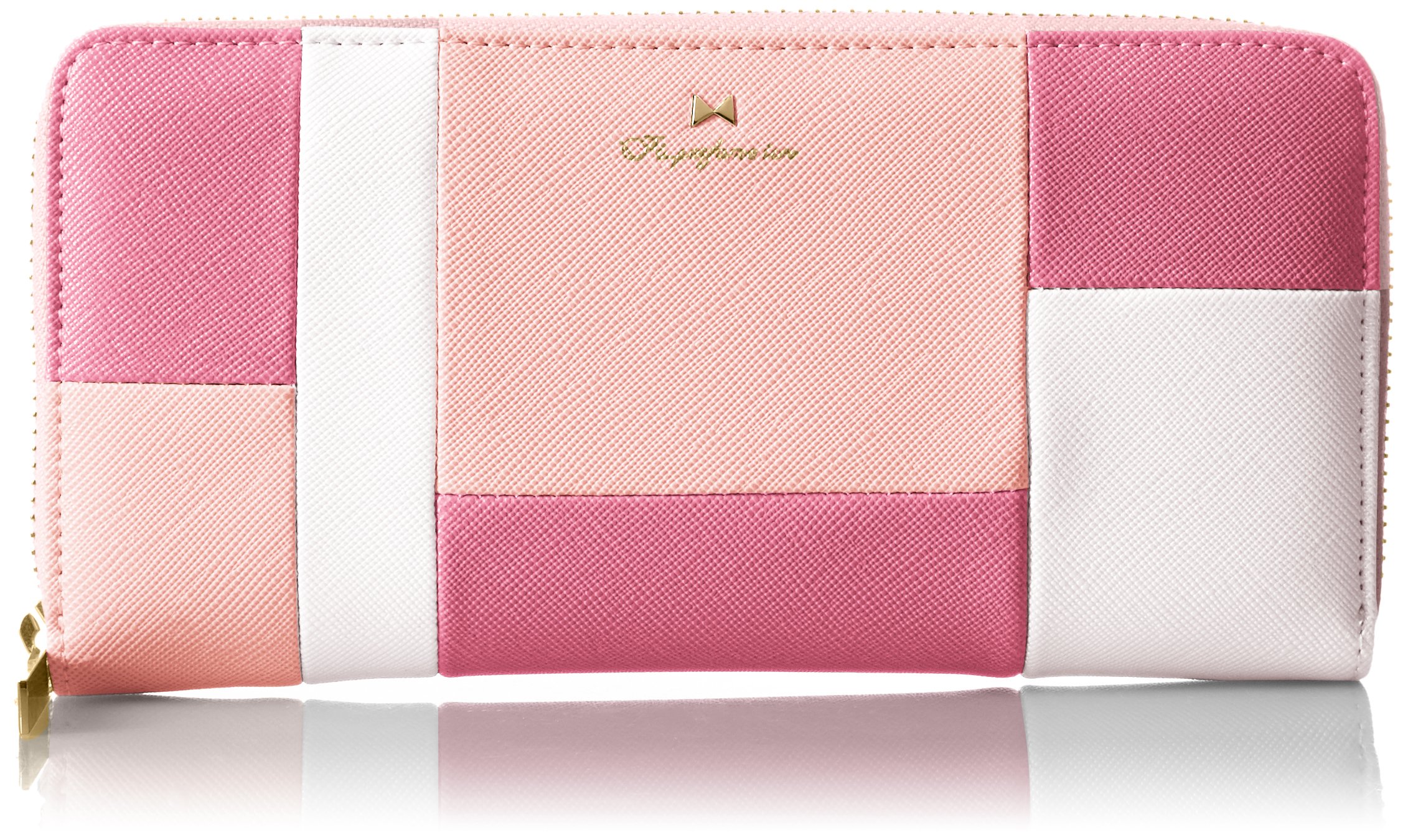 It is a cute type zipper type long wallet that combines the blocked material with coloring.