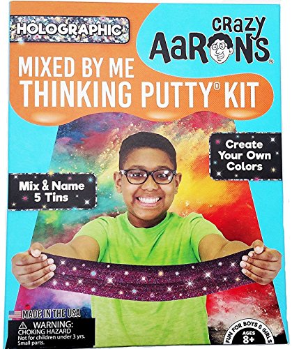 -. Binding : Toy -. Brand : Crazy Aaron's -. EAN : 0688943129974 -. Feature : Create your own custom colors with CRAZY AARON'S - MIXED BY ME - HOLOGRAPHIC PUTTY KIT! / Complete kit comes with mixing mat and ideas for color formulas - be creative and invent your own! / Made in the USA. -. IsAdultProduct : 0 -. Label : Crazy Aaron's Thinking Putty -. Manufacturer : Crazy Aaron's Thinking Putty -. ProductGroup : Toy -. ProductTypeName : TOYS_AND_GAMES -. Publisher : Crazy Aaron's Thinking Putty -. Studio : Crazy Aaron's Thinking Putty -. Title : HOLOGRAPHIC Sparkle Mixed By Me Kit Crazy Aaron's Illusions Thinking Putty -. UPC : 688943129974
