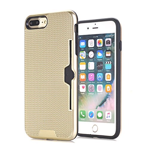 iPhone 7 Plus Case Gold Design with ID Holder, iPhone 7 Plus Ultra Thin Case, Full Body Soft Rubber Hard PC Back Shell Anti-Scratch Shockproof iPhone 7 Plus Bumper Case for Apple iPhone 7 Plus