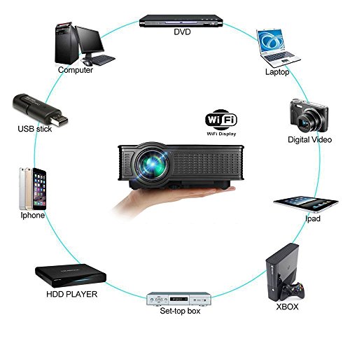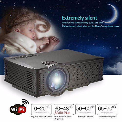 ◆ COMPACT & PORTABLE -- Small Size and Light Weight of Weton SD50 PLUS Mini WIFI Portable Home Theater Projector enables you to take it to anywhere you want. Easy to set up, a Smart TV can be completely replaced. Ideal for Christmas and Thanksgiving Party, Home Theater Entertainment, Family Movie Time, Football / Sports Events, TV Series and Video Games.