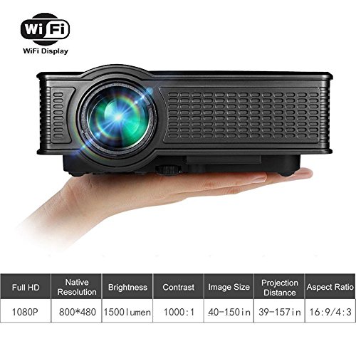 Mini Wifi Projector, Weton 1500 Lumens LED Portable Video Projector Support 1080P HDMI USB SD VGA AV Interface for Home Theatre Entertaiment