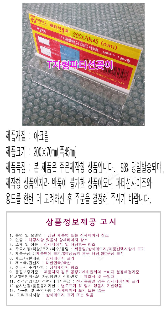 - 품명 및 모델명파티션꽂이(200x70mmx폭45mm)