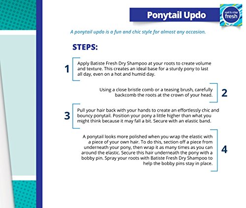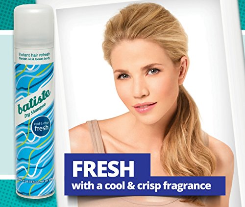 ReleaseDate : 2015-01-23 Studio : Batiste Publisher : Batiste Binding : Health and Beauty Product Description Take your hair from flat to fab with Batiste Fresh Dry Shampoo. Our waterless formula targets excess oil, dirt, and grease at the roots. Batiste Fresh locks in a cool and crisp scent that never overpowers. Just spray in, massage, style, and go. Batiste Dry Shampoo instantly makes your hair feel clean, fresh, and full of body and texture. Perfect for the girl-on-the-go, use Batiste Dry Shampoo between washes to keep your hair looking fresh and fabulous without the effort. Let's face it, life gets crazy sometimes and skipping a wash (or two) is inevitable. With Batiste Dry Shampoo, you can be confident your hair looks great no matter what life throws your way. 0