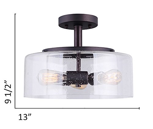 CANARM ISF633A03ORB Nash 3 Bulb Semi-Flush Mount with Seeded Glass, Oil Rubbed Bronze