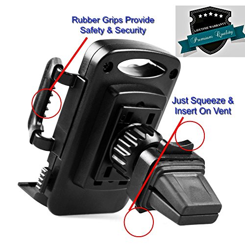 Universal Air Vent Mount Car Phone Holder - 360° Rotation. Cradle Holds All Smartphones including iPhone, Android, Blackberry and GPS Devices.