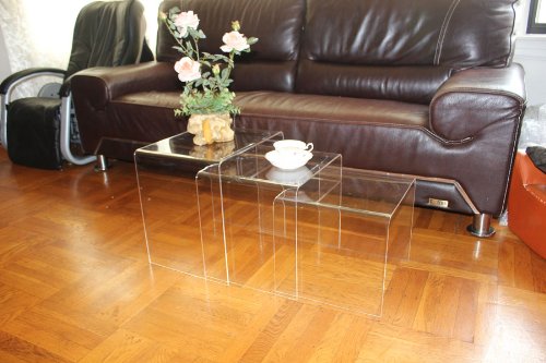 -. Title : DisplayGifts AC-TB1 Clear Acrylic Nesting Table Coffee End Table 3pc Lucite Side Table Set