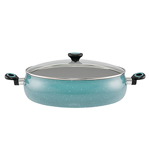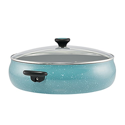 Paula Deen Riverbend Aluminum Nonstick Covered Family Gathering Pan / Large Jumbo Cooker, 10-Quart, 13.75-Inch, Gulf Blue Speckle