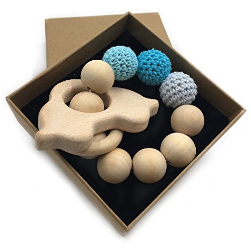 -. Binding : Baby Product -. Brand : Amyster -. Color : White -. Feature : Material:Wood. / Easy to clean,Safety and baby's comfort.There might be a slight difference in the shade and grain of the wood in the toy you receive from the pictured one. / Help your baby focus while nursing or stay happy with natural teething pain relief. / Encourages early motor skills while giving infants something to hold and manipulate. / Babies should always be supervised while playing with adult and be never left alone. -. IsAdultProduct : 0 -. Label : Amyster -. Manufacturer : Amyster -. MPN : H155 -. PackageQuantity : 1 -. PartNumber : H155 -. ProductGroup : Baby Product -. ProductTypeName : BABY_PRODUCT -. Publisher : Amyster -. Studio : Amyster -. Title : Amyster Crochet Bead Teething Ring Set Untreated Beech Teether with Organic Wood Animal Toy Wood Bracelet Baby Mom Kids Wooden Teether Bangle