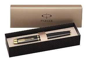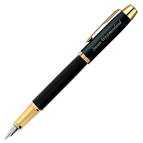 -. Binding : Office Product -. Brand : DaysP.R.Ing Pens -. Color : Black with gold trim -. Feature : Free Engraving Included, up to 24 characters max. Engraving shows up a gold color on pen cap / Fountain Pen - medium nib / Comes with a Starter ink cartridge and gift box / Parker IM Fountain Pen / Great Engraved Gift Pen -. Label : Parker Pens -. Manufacturer : Parker Pens -. MPN : GP-1135engraved -. PackageQuantity : 1 -. PartNumber : GP-1135engraved -. ProductGroup : Office Product -. ProductTypeName : OFFICE_PRODUCTS -. Publisher : Parker Pens -. Studio : Parker Pens -. Title : Engraved / Personalized Parker IM Black Fountain Pen - Medium Nib. Fast 1 Day Engraving Time