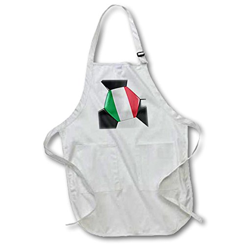 3dRose Italy Soccer Ball - Medium Length Apron, 22 by 24-Inch, with Pouch Pockets (apr_181226_2)