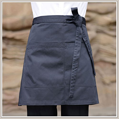 LissomPlume Unisex 2 Pockets Waist Apron Restaurant Bistro Works Half Aprons 70X45cm Deep Gray