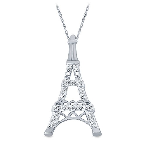 1/10 Cttw 10K White Gold Diamond Accent Eiffel Tower Pendant Necklace