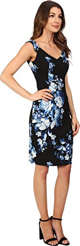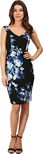 Product DescriptionPortrait neckline stretch crepe floral sheath with set in back zipper0