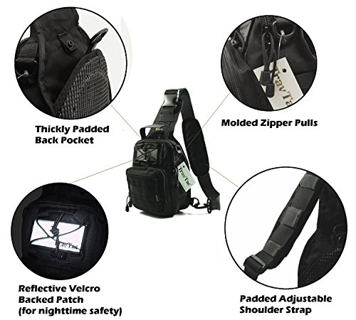 -. Feature : PLEASE READ (check dimensions in pictures carefully): A Superior Tactical MOLLE Style Sling Bag - Small Compact Design for EDC (Everyday carry). Goes Anywhere Design is Perfect Where Large Packs are Too Big, Too Bulky and Too Heavy. Ambidextrous and Configurable 3 ways (Shoulder Pack, Chest or Back Sling and Hand Carry) / Padded Shoulder Strap Provides All Day Comfort. Permanent Zipper Pulls won't Loosen or Fall Out like Knotted Pulls can. This MOLLE Compatible Pouch has 3 Zippered Compartments and Contains Multiple Dividers for Easy Organization of Gear. / Redly Constructed from Premium Materials and Upgraded 900D Fabric. Ideal for both Indoor and Outdoor use including Hiking, Hunting, Travel, Camping, School Supplies, Biking, Sporting Events, Gear / Tool Bag, Range Bag Etc. / Highly Reflective Safety Patch Adds Night Time Visibility. Patch is Velcro Backed making it Removable for Trail Marking or Rescue Signaling. Thickly Padded Back Pocket is well suited for Concealed Carry and Shoulder Strap is Detachable and Adjustable in Length. / Genuine TravTac Products are Sold Exclusively by Trusted Empire and are Quality Inspected, Packaged and Shipped from the USA.
