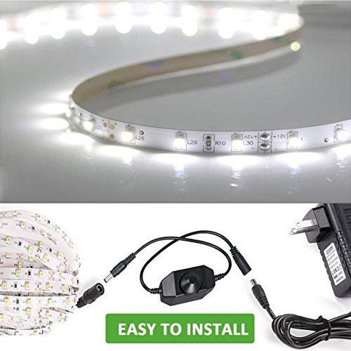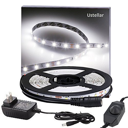 Ustellar Dimmable LED Light Strip Kit, 300 Units SMD 2835 LEDs, 16.4ft/5m 12V LED Ribbon, 6000K Daylight White Under Cabinet Lighting Strips, Non-waterproof LED Tape, UL Listed Power Supply