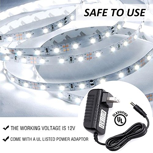 - SUPER BRIGHT AND SAFE TO USE: This 16.4ft strip light includes 300 bright LEDs. And the working voltage is 12V (A UL Listed Power Adaptor is included), extremely Low Heat. It is touchable.