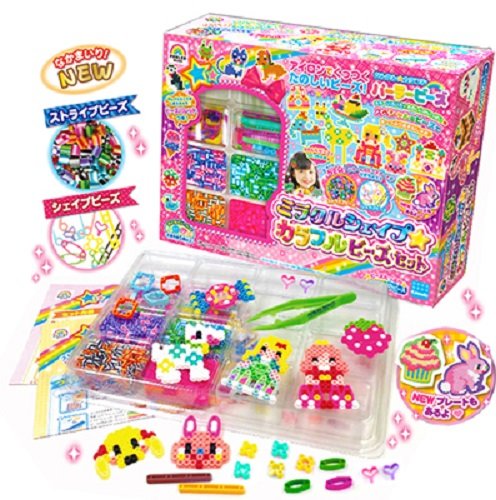 셰이프 비즈 등의 신비즈나 스트라이프색의 비즈도 들어간 볼륨세트.신비즈용의 이미지 씨트 가진 있어 작품의 폭이 넓어집니다. ■세트내용 믹스 비즈:약6000P 전30색 컬러 플레이트:6매(하여 이렇게 L,하트,육각,스타,토끼,컵 케익) 이미지 씨트:2매 비즈 팔레트:1개 핀세트:1개 아이런 페이퍼:1매 ■팩키지크기:약H235×W310×D90mm ■대상 연령:5세부터