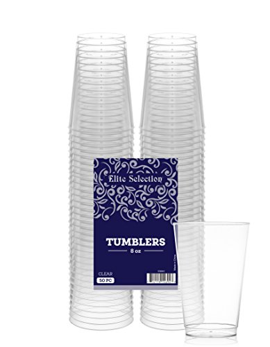 Elite Selection 8 Oz. Pack Of 50 Clear Hard Disposable Party Plastic Tumblers/Cups