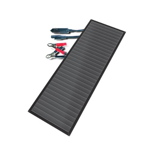 -. Feature : Keeps your vehicle batteries charged; works with all 12-volt rechargeable batteries including those in vehicles, boats, farm equipment / High quality amorphous solar material will work in all light conditions even on overcast days / Weatherproof for outdoor use / Battery clamp, 12-volt car plug and flat or tilted mounting hardware included / Provides up to 2-watt or 0.13 Amp per hour of sunlight