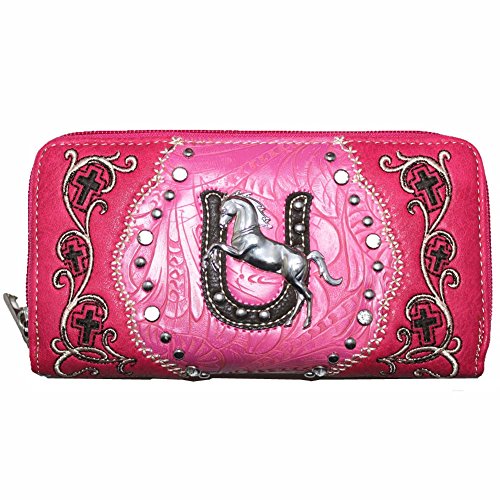 Binding : Apparel Product Description Premium Rhinestone Western Metal Horse Cross Women's Wallet with Extra Hand Wrist in 6 Colors. Size:8" x 4.5" x 1.5".12 credit card slots ,ID slots,4 cash/check pockets ,4 large pockets ,one pocket with zipper inside. 2 zippers closures on top. Extra hand wrist.Beautiful Rhinestone Western Metal Horse cross design..Fast handling and shipping in same business day. 0