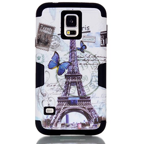 - Title : S5 Case, Galaxy S5 Case, CexCob Eiffel Tower Butterfly [Shockproof] 3 in 1 Hybrid Silicone TPU & Hard Plastic Rugged Heavy Duty Combo High Impact Durable Phone Case for Samsung Galaxy S5, Black