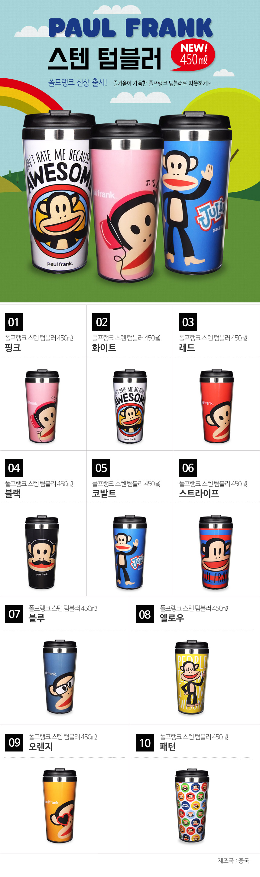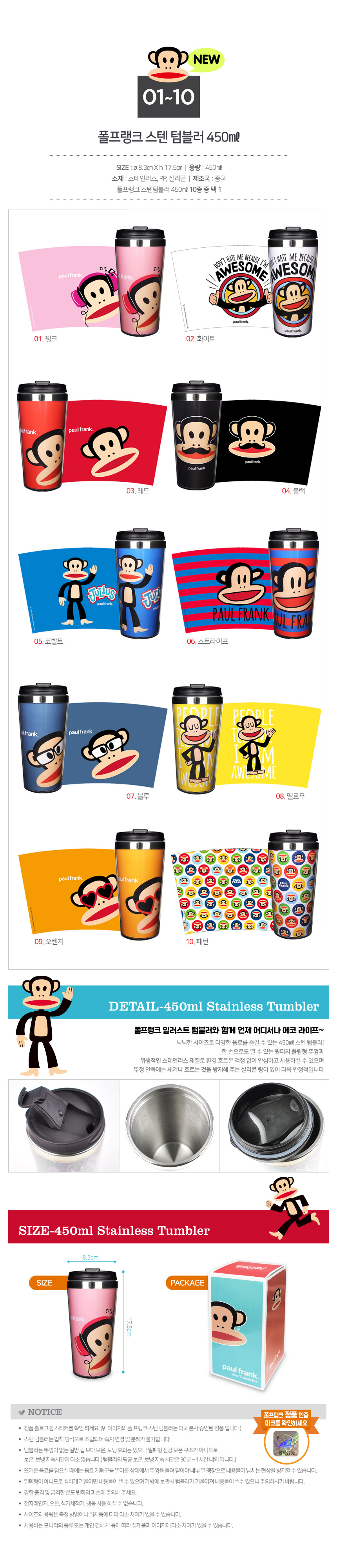 상품명 : 폴프랭크 스텐 텀블러 450ml