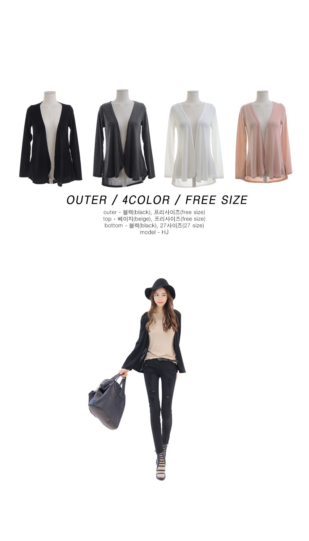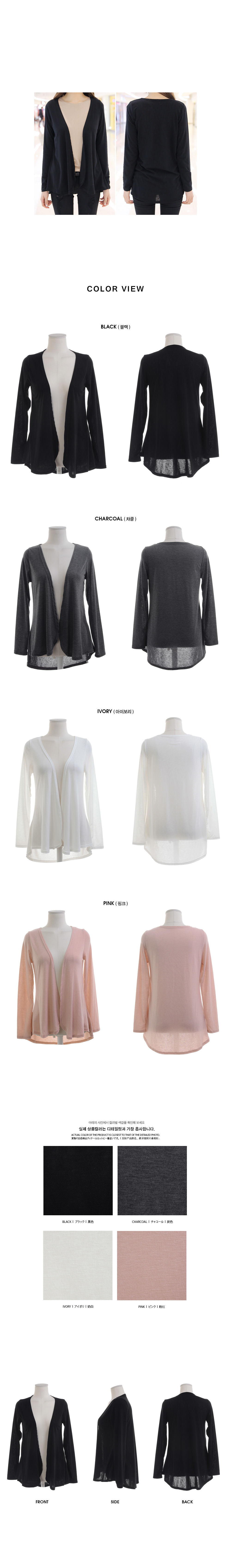 촤르르 가볍게 입기좋은 봄가디건이에요 ~ 쫀쫀하게 신축성이 좋은 소재감으로 편안하구요 얇은 소재감으로 봄,여름 쭉 ~ 함께하기 좋아요 ! 나시와함께 코디해주시면 리조트룩이나 이지룩으로 착용하기 좋으실꺼에요~ 따로 클로징이 없는 가디건으로 숄처럼 입어주시면 좋구요 블랙,챠콜,아이보리,핑크 네가지 컬러감으로 다양하게 준비했어요 ^^