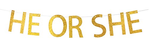 -. Binding : Toy -. Brand : INNORU -. Color : gold -. Feature : This " HE OR SHE" banner is just made for this specially event, it's not only a cute decoration but also a nice photo props. -. IsAdultProduct : 0 -. Label : INNORU -. Manufacturer : INNORU -. MPN : OB-37 -. PackageQuantity : 1 -. PartNumber : OB-37 -. ProductGroup : Toy -. ProductTypeName : TOYS_AND_GAMES -. Publisher : INNORU -. Studio : INNORU -. Title : Boy or Girl Gender Reveal Party Banner - Gold He or She Bunting Pregnancy Announcement Decorations Supplies