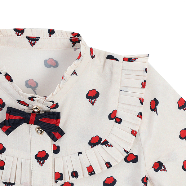 소재-겉감 : 폴리에스터100%색상-아이보리 사이즈-110,120,130,145,155,165상세설명-귀여운 구름패턴을 사용한 블라우스로 넥쪽의 프릴과, 요크선라인의 주름포인트를준 아이템으로 점퍼원피스나,