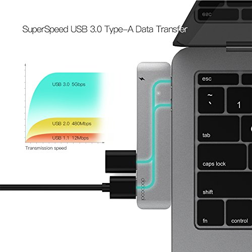 dodocool USB C Hub with Thunderbolt 3 Type-C Port SD/TF Card Reader, 2 USB-A 3.0 Ports Support Data Transfer 5K Video Output for 13" or 15" MacBook Pro 2016/2017