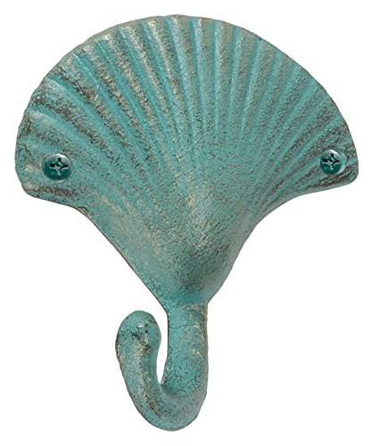 Abbott Collection Cast Iron Seashell Wall Hook, Light Green