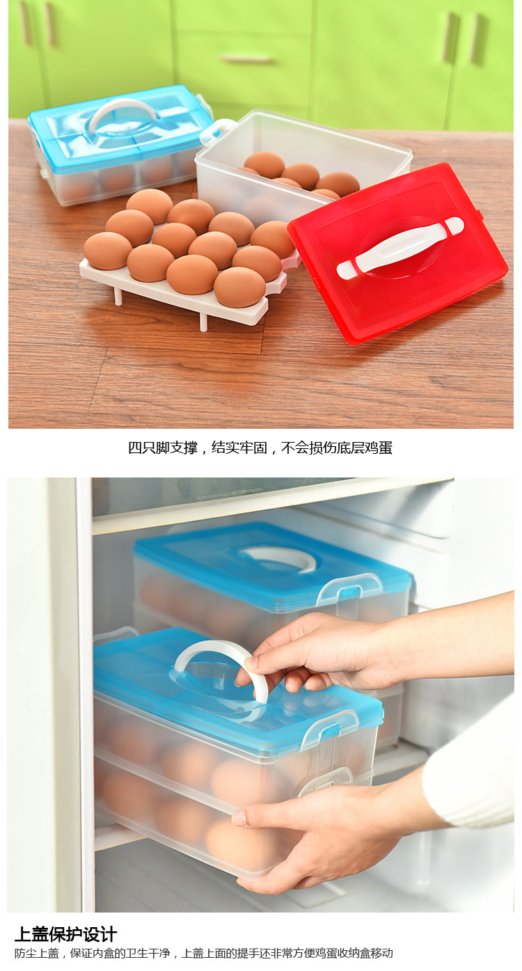 厨房便携塑料双层鸡蛋保鲜收纳盒 创意冰箱收纳大保鲜盒