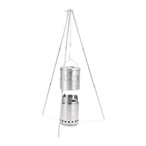 SOLO STOVE TRIPOD: COMPACT LIGHTWEIGHT ALUMINUM TRIPOD W/ ADJUSTABLE HANG CHAIN. WORKS WITH SOLO STOVE TITAN AND CAMPFIRE. PERFECT FOR CAMPING, BACKPACKING, SURVIVAL