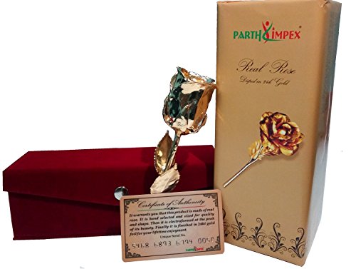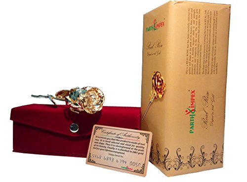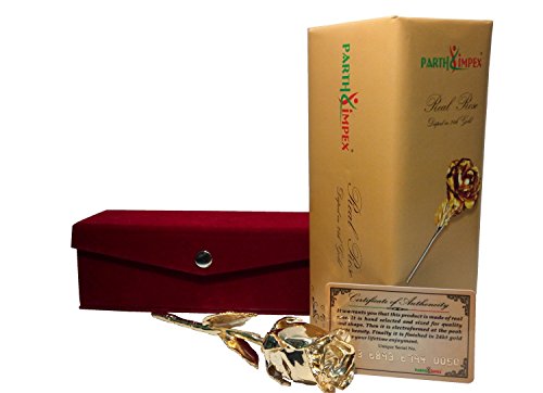 PARTH IMPEX Premium 24K Gold Dipped Rose in Beautiful Velvet Gift Box Best Unique Gift for Husband wife Mom Dad Mother Valentines Day Wedding Anniversary Birthday Easter (Approx 11 Inches in Length)