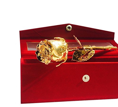 - 11” Inches 24K Gold Dipped Natural Real Rose with its Original Petals Stem & Leaves. Our Premium Gold Plated Rose are Natural Real Rose dipped in 24k Gold Foil to Preserve the Roses for Forever. This Process take at least 4 Days Handwork and More then 60 Steps to make one Single Piece.