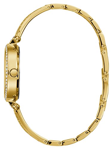 Simplicity meets elegance in this sporty-chic watch featuring a polished gold-tone case and crystal-embellished bezel.