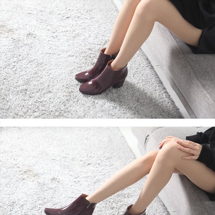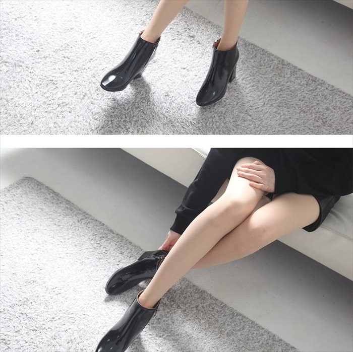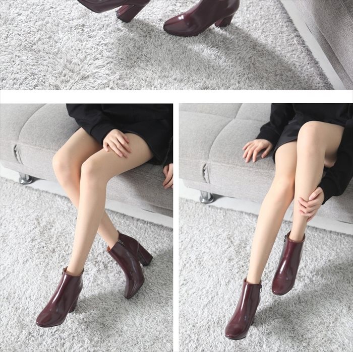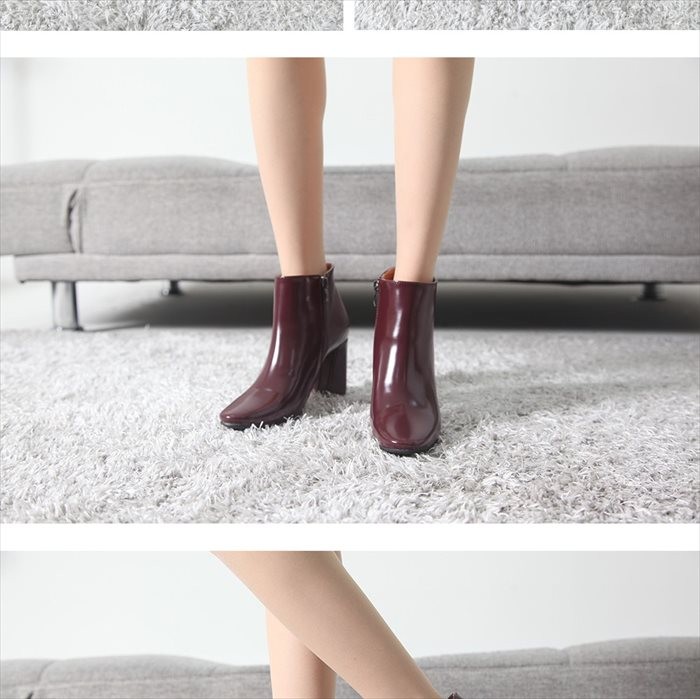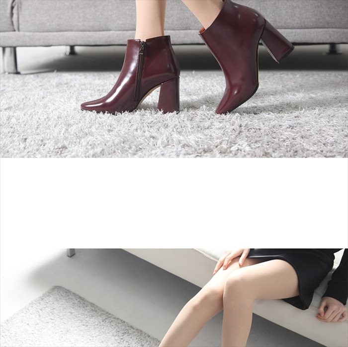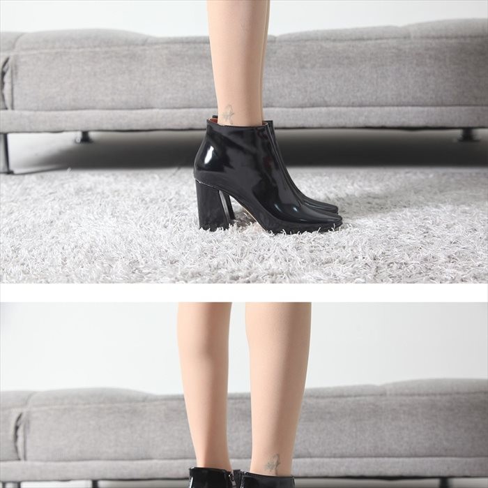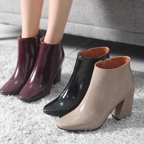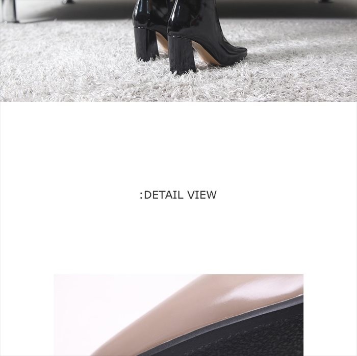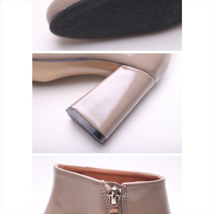 商品名:ブーティ レディース ブーティー チャンキーヒール 太ヒール エナメル調 2017 秋冬 ファッション 靴 婦人靴