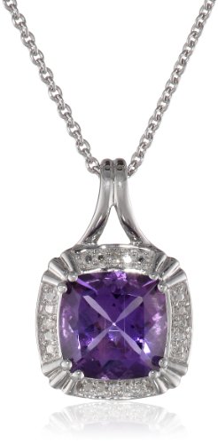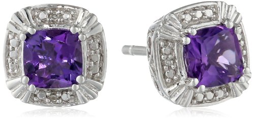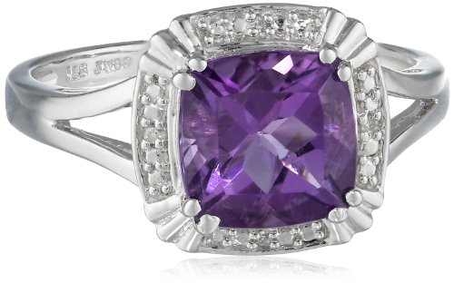Create a brand-new fashionable look with the stunning Sterling Silver Amethyst and Diamond Ring, Pendant, Earring Box Set. Included in the gorgeous set are a beautiful, cushion-cut amethyst ring, earrings with a friction-back post, and an 18-inch rolo chain with pendant. The pendant's chain features a lobster-claw clasp for an effortless on/off. All pieces are crafted with 925 sterling silver and feature petit white diamonds set in the border.
