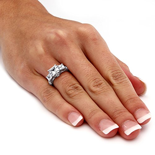 -. Title : Platinum over Sterling Silver Princess Cut Created White Sapphire 3-Stone Ring
