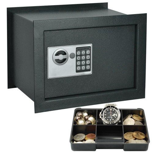 -. Binding : Office Product -. Brand : Globe House Products -. Feature : Open with secret PIN code or included keys / LED lights and buzzers feedback for each operation and power status / Time out period gives better protection after 3 incorrect combination attempts / Small tray for collecting small valuables conveniently(Free Gift) / Runs on 4 x AA-Size(1.5V) batteries(not inculded) -. Label : Globe Warehouse -. Manufacturer : Globe Warehouse -. MPN : GHP1510 -. PackageQuantity : 1 -. PartNumber : GHP1510 -. ProductGroup : Office Product -. ProductTypeName : OFFICE_PRODUCTS -. Publisher : Globe Warehouse -. Studio : Globe Warehouse -. Title : GHP Home Electronic Digital Black Solid Steel Gun and Cash Wall/ Floor Safe