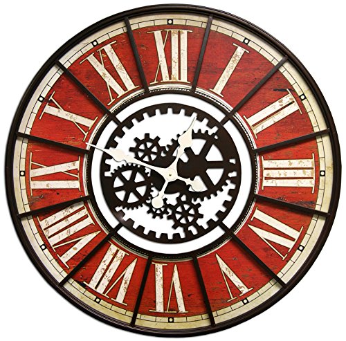 -. Binding : Kitchen -. Brand : HDC International -. Color : Red and Black -. EAN : 0190480500784 -. Feature : Sturdy metal construction / Easy to hang / modern design / large numbers so it is easy to read / Quartz movement works with just 1 AA battery (not included) -. IsAutographed : 0 -. Label : HDC International -. Manufacturer : HDC International -. Model : 05-0035 -. MPN : 05-0035 -. PackageQuantity : 1 -. PartNumber : 05-0035 -. ProductGroup : Home -. ProductTypeName : HOME -. Publisher : HDC International -. Studio : HDC International -. Title : Large Wall Clock with Decorative Gear Look Red 32" Quartz movement -. UPC : 190480500784