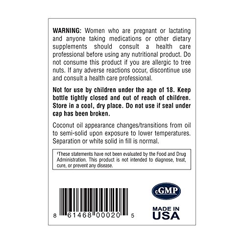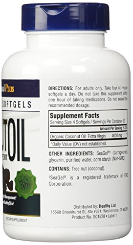 Nutritional Plus Coconut Oil Vegetarian Softgels are freshly made from cold-pressed organic coconuts. Filled with organic virgin coconut oil that is rich in Medium Chain Triglycerides, (MCT's), to improve digestive and cardiovascular health, thyroid function and boosts the immune system. Nutritional Plus Coconut Oil Vegetarian Softgel capsules are 100% vegan, and free of GMOs. Nutritional Plus Coconut Oil Vegetarian Softgels are manufactured in FDA-registered facilities that adhere to current good manufacturing practices.Feature