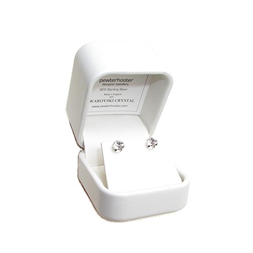Pewterhooter Lagerraumung. Herren 925 Silber Ohrstecker handgefertigt mit funkelnden weiss wie ein Diamant Kristall aus SWAROVSKI.
