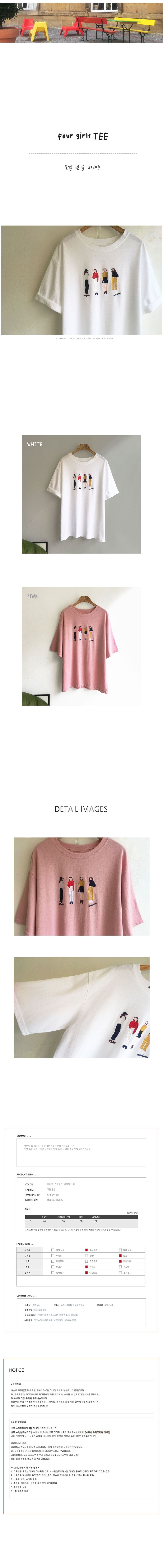 Free(단면): 가슴둘레 56cm, 어깨 50cm, 소매 24cm, 총장 64cm