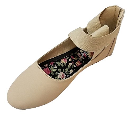 Binding : Apparel Product Description Women's Cross Elastic Ankle Strap Ballet Flats Slip Ons Let these be an expression of your simple and carefree spirit. The cute ballet flats feature criss crossed ankle straps for added support and comfort. Back zippered enclosure allow for easy on/off access. They are available in 3 colors: Black, Beige, and Tan/Brown. Please refer to our measurements and compare them with the dimensions of your feet and select the proper size accordingly. Size 5.5 Length 23.5 cm Width 8cm Size 6 Length 24cm Width 8cm Size 6.5 Length 24.3cm Width 8cm Size 7 Length 24.5cm Width 8cm Size 7.5 Length 24.8cm Width 8cm Size 8 Length 25cm Width 8cm Size 8.5 Length 25.3cm Width 8.5cm Size 9 Length 25.5cm Width 8.5cm Size 10 Length 26cm Width 8.5cm 0
