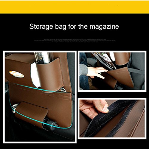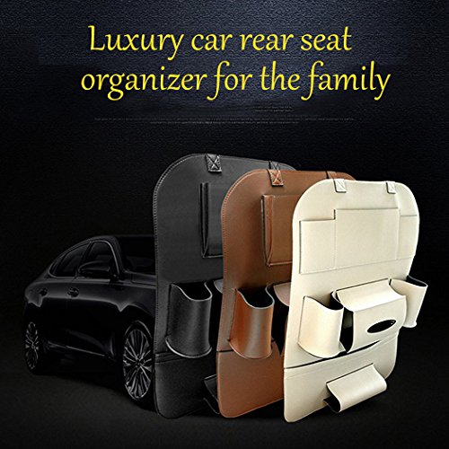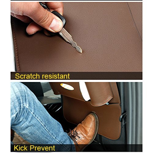CiaraQ Water-Repellent Leather Car Seat Back Organizer and iPad mini Holder,Universal Use as Car Backseat Organizer for Kids, Kick Mat & Seat Back Protector, Great Travel Accessory for Kids.(brown)